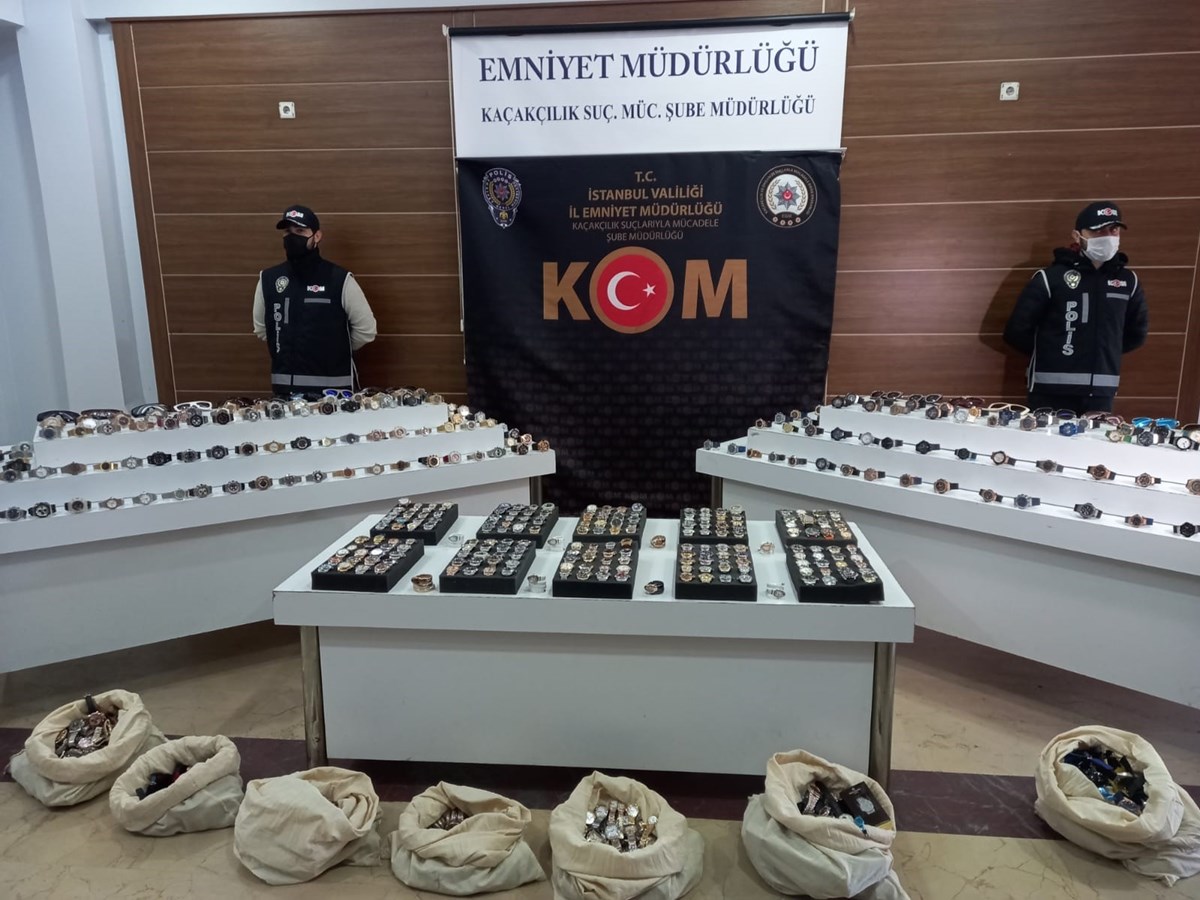 Ekipler 20 Ocak'ta bu adreslere baskın düzenledi. Dükkanlarda arama yapan ekipler bin 539 adet değişik markalara ait kol saati ve 67 adet değişik markalara ait gözlük ele geçirdi.