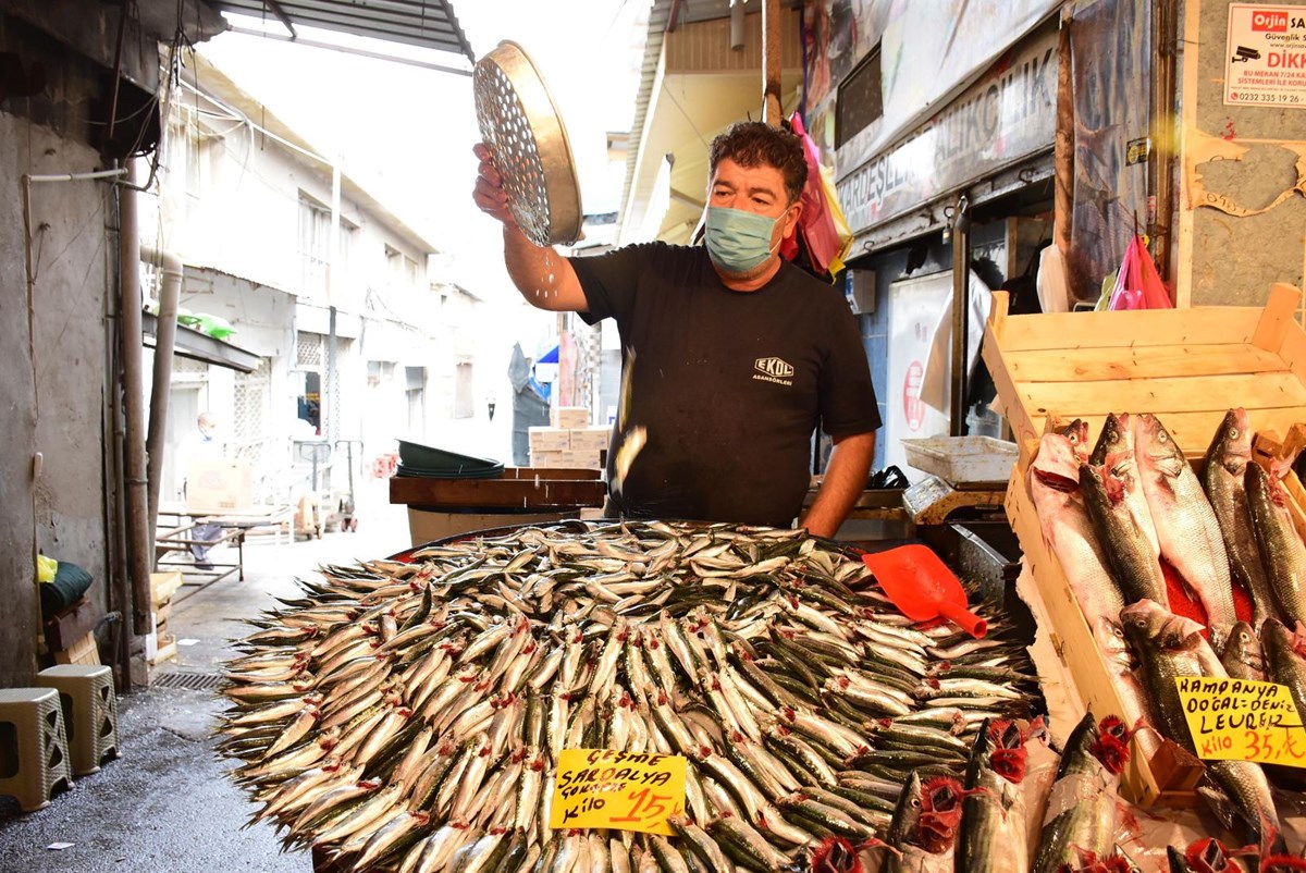 Kentin en önemli balık satış noktalarından Havra Sokağı'nda balık satışı yapan İzzettin Yedikardeş, Ege'de şu an en çok sardalya ve hamsi çıktığını belirterek, Türkiye'nin her yerine hamsinin İzmir ve Ege Bölgesi'nden gittiğini ifade etti. Karadeniz'de bile hamsi olmadığını söyleyen Yedikardeş, "Ege Bölgesi'nde çıkan hamsiler iri olduğundan İstanbul, Ankara ve Karadeniz'e bu hamsiler gidiyor. Şu an İzmir'de bol olan balıklar hamsi ve sardalya. Fiyatlar uygun. Sebze daha pahalı diyebilirim. Bamyanın bir kilosu 25 TL ama bir kilo balık 15 TL. Vatandaşın balığa olan talebi yüksek. Özellikle pandemi döneminde vücudu güçlendirecek en iyi şey balık. Uzmanlar da bol bol balık yenmesi konusunda açıklamalarda bulunuyor" dedi.